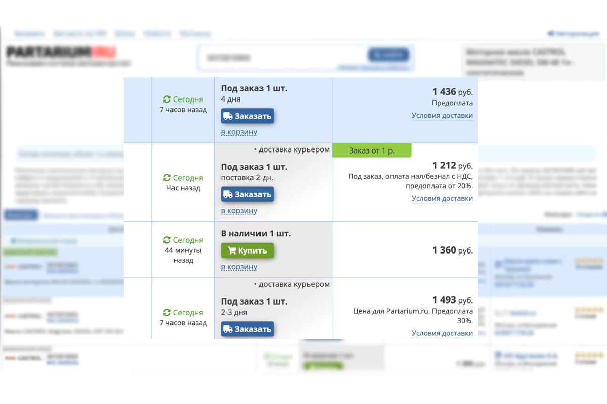 На нашем сайте уже давно существует строгое разделение предложений с наличием и предложений "Под заказ". И те и другие находятся всегда в своих блоках, но до текущего момента они не имели видимых различий, кроме надписей. Теперь же, каждый блок имеет свой цвет. Предложения продавцов исключительно со своим собственным наличием размещены в зеленых блоках с надписями "Запрошенный номер". и "Замены", а предложения продавцов работающих "под заказ", а так же прочие и устаревшие размещены в серых блоках с надписями "Запрошенный номер (прочие предложения и "Под заказ")" и "Замены (прочие предложения и "под заказ")" . Теперь, покупателям стало еще проще ориентироваться среди предложений продавцов.